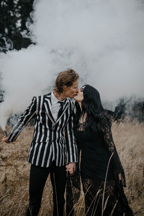 In the spirit of Halloween...I decided to do a last minute "styled" shoot. I say "styled" in quotations because it came together very casually. My models, Kyle + Kim, already owned the wardrobe pieces, and then I brought the props. I had previously used this flower crown for Elyse's maternity shoot - I was happy I was able to dry it out and re-purpose it.